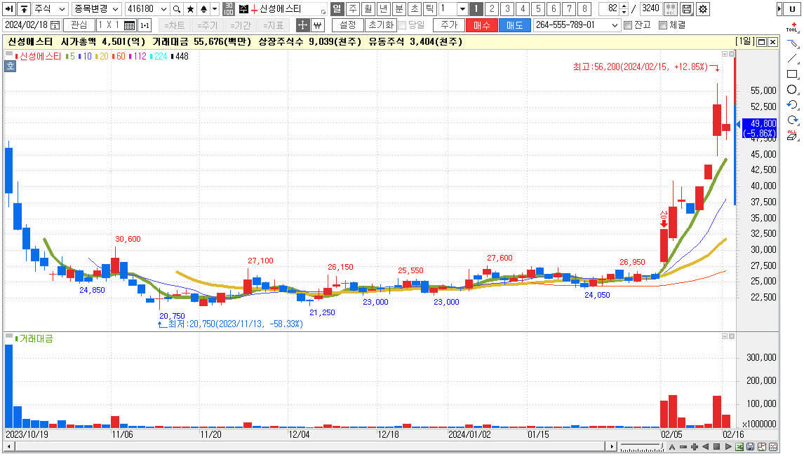 ▶ 초전도체 관련주이자 대장주인 신성델타테크에서 58.82%의 주식을 보유 중.