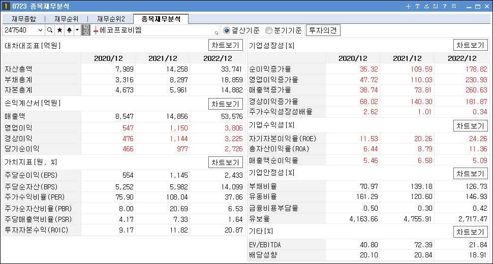▶ 엘앤에프는 양극재 물질과 그에 관련된 소재를 제조, 판매하는 기업입니다. 2차전지 관련주로 수출 비중이 95%, 내수가 5% 정도로 수출에 의존성이 높은 기업입니다. 2021년까지는 순이익이 적자였지만 2022년부터 흑자폭이 크게 늘어나고있습니다. 전망이 좋은 기업입니다.