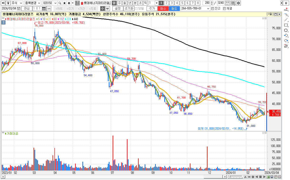 2차전지 관련주 대장주 3. 롯데에너지머티리얼즈